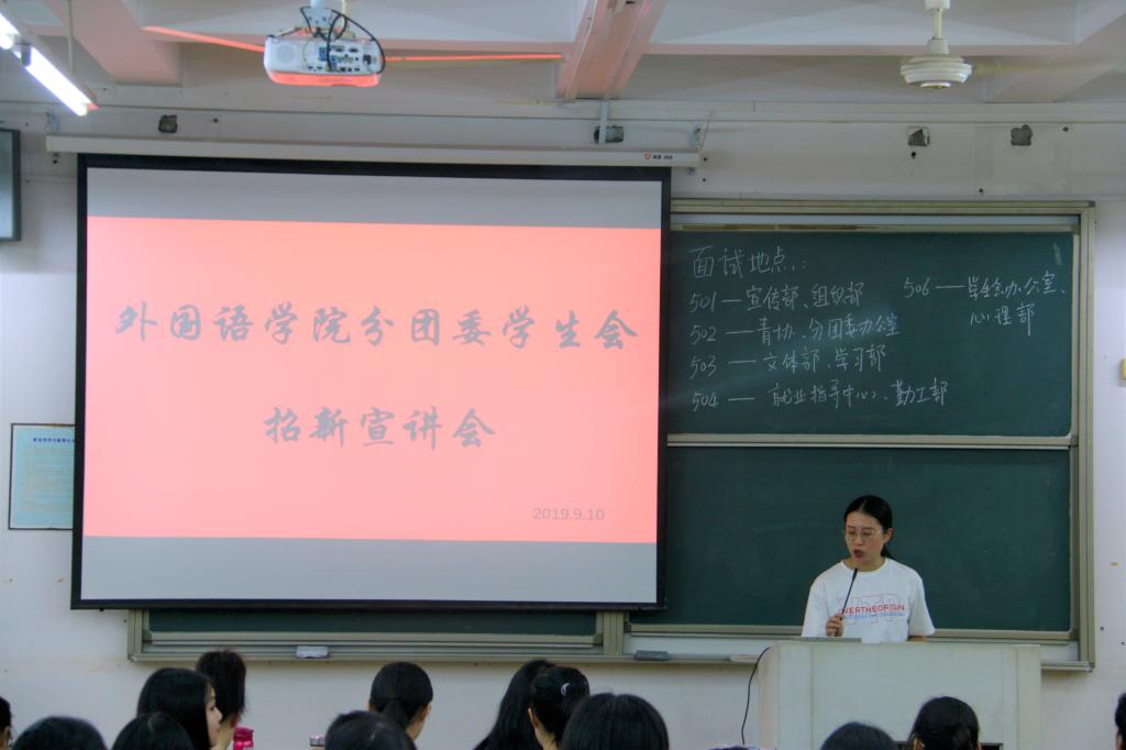 9月10日晚,拼搏在线官方网站分团委学生会干事招新宣讲大会在南山9号楼301教室顺利举行。拼搏在线官方网站分团委学生会全体学生干部以及2019级全体新生参加了本次宣讲大会。