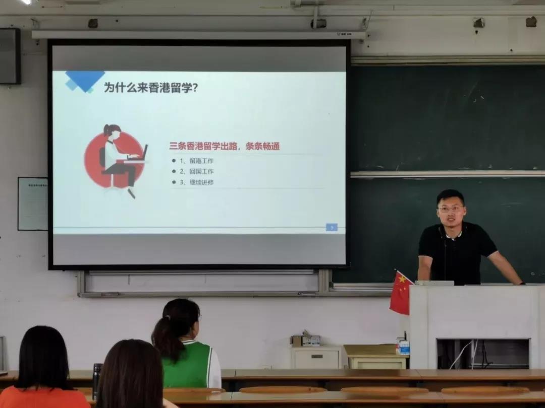 讲座在同学们热烈的掌声中拉开序幕,云老师首先向同学们深入剖析了选择香港留学的诸多优势,重点讲述了香港留学回国后的毕业前景,香港签注种类等。