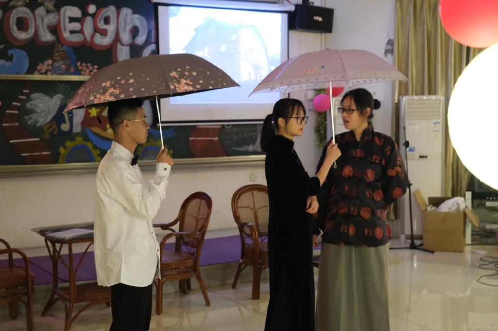 经典如一场雷雨倾盆降至,首先上场的是来自英语192班的同学,为我们带来经典话剧《雷雨》片段。雷电轰鸣,雨声淅沥下,周仆园的自私自利,鲁侍萍守护仅存的尊严,血缘关系的追溯,在最后一声呼喊中揭露了血淋淋的封建时代的悲哀。