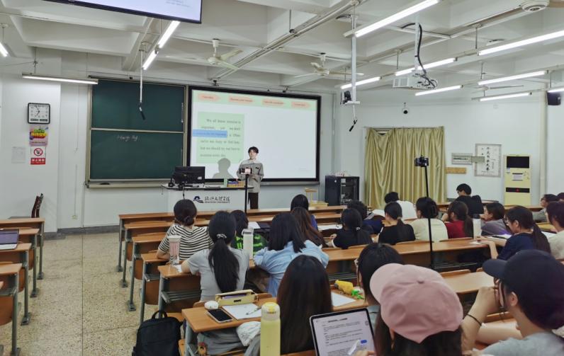 本次竞赛严格对标省级赛事标准,采取“限时备课+模拟授课+即兴答辩”的全链条考核模式。参赛选手现场抽取课题后,需在60分钟内完成备课与课件制作,随后进行10分钟全英文模拟授课。面对评委的即兴提问,选手们凭借扎实的专业功底和敏捷的应变能力,展现出新时代师范生的综合素养。