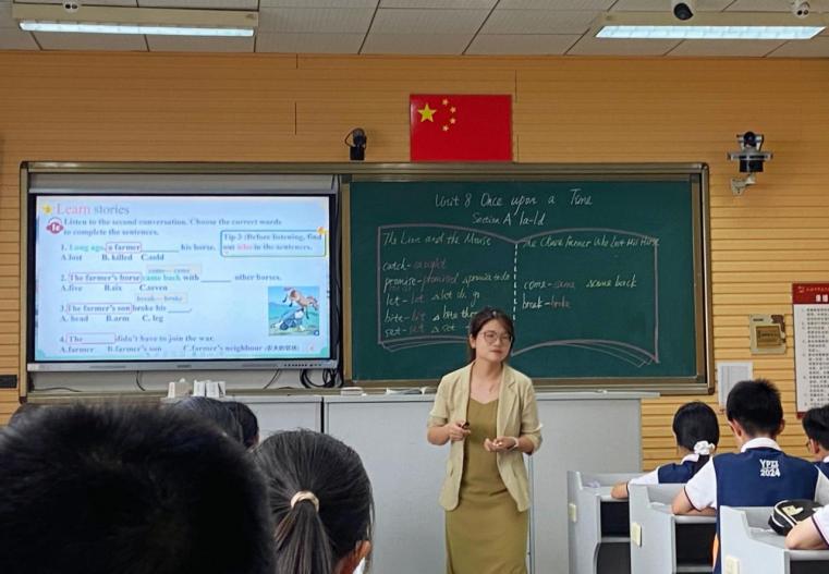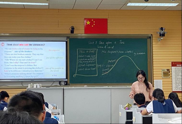 元培中学傅佳楹老师和周卓婷老师分别带来了精彩纷呈的教学展示。两位老师的课程设计关联实际,层层递进。导入环节,她们分别设置了故事大王比赛和故事会情境,意图作为贯穿她们各自整堂课的情境主线,为最后复述和角色扮演的产出活动作好大情景的铺垫。为了帮助学生在最后产出,两位老师分别通过层层递进的活动设计,引导学生逐步搭建支架帮助:傅老师关注故事发展的要素、一般过去时的动词、时间状语等辅助知识的铺垫;周老师重视故事链、视觉辅助等为学生提供支架帮助。老师们注重语篇的主题意义,分别通过精巧设计的活动帮助学生理解语篇的深层意义:傅老师联系前一单元的句型,引导学生表达自己从故事中学到的寓意;周老师借用人物扮演体会情感,结合之前的故事链,引导学生思考故事背后的深意。最后两位老师以小组产出活动结束,学生积极参与其中,用已学的目标语言和丰富的肢体语言再现故事经典,这可见两位老师的教学设计较好达成目标。两位老师充分践行了课标中提出的“教学评”一体化理念,将原本零散的教学任务巧妙地整合在一起,使整堂课呈现出高度的整体性和完整性。
