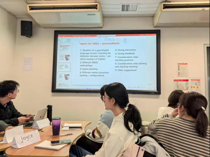 研修期间,David,Baryy等悉尼大学资深教师以“真实课堂”为场景,引导学生完成“任务链”设计、分层提问与即时反馈等模拟教学。学员每完成一个模块,即接受“同学+导师”双通道评估,并在次日的课堂中加以改进。以ICQ的教学为例,在ICQ技巧的学习中,学生们通过小组合作,设计并实施了以具体语境为导向的语言学习活动并使用相关语句进行提问式检查。这些任务紧密结合实际生活场景,让学生们深刻体会到如何通过真实、有意义的提问式检查激发学生的学习兴趣和语言运用能力。这一技巧的学习帮助学生们掌握了如何在课堂上通过提问来检查学生对教学指令的理解程度。通过精心设计的问题,教师能够及时发现学生在理解上的偏差,并进行针对性的调整,从而提高课堂教学的有效性。来自24级英语师范祖楠班的俞诗湉同学表示:“我第一次意识到,精准的一句 ICQ 就能避免整节课的‘无效指令’。同时确实感受到中外教学方式的不同,如果将两者结合会有更好的上课体验。”